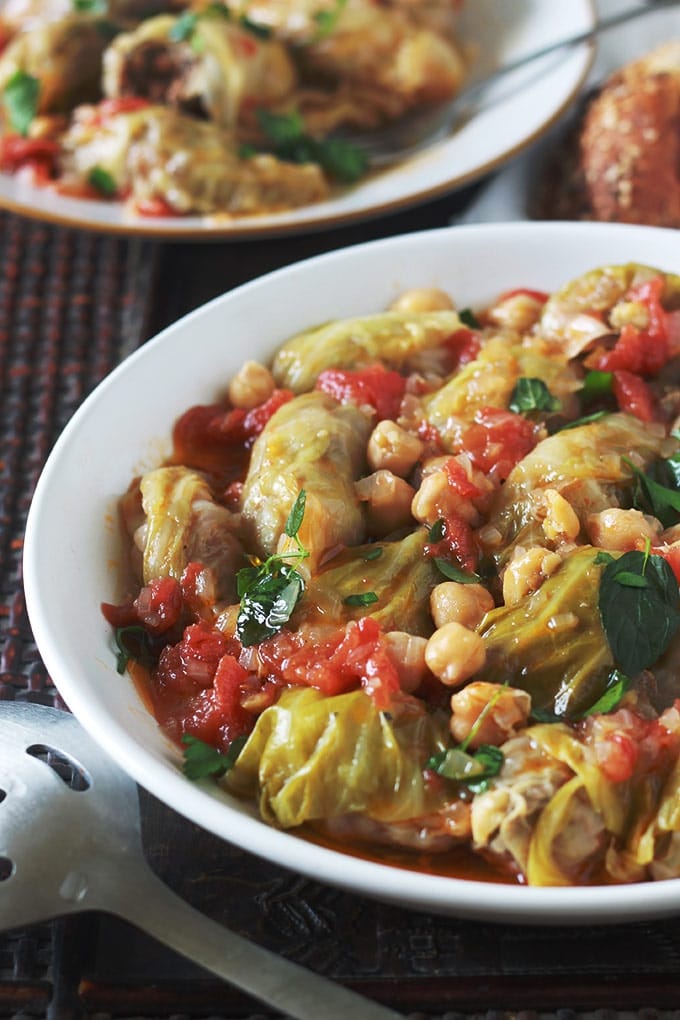 Vers uit de diepvries: Algerijnse gevulde koolrolletjes met gehakt, rijst, heel veel kruiden en tomaat/kikkererwt saus
